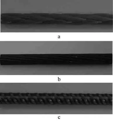 a—發(fā)辮式(編織型);b—絞線式;c—拉擠變形筋。