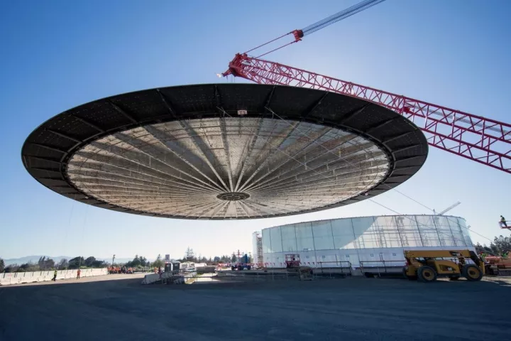 看了施工照片應該有所了解,這個重量的屋蓋可以采用整體吊裝式施工,如果換成鋼板,大約會變成320~480噸的“大胖子”正是因為CFRP輕質(zhì)高強,才經(jīng)受得住周圍玻璃結(jié)構(gòu)的支撐,才有了這“漂浮”的屋頂