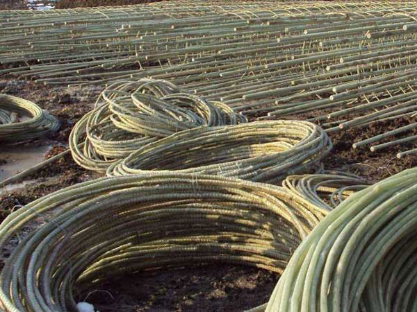 玻璃纖維樹脂筋材的基材包括不飽和聚酯樹脂、乙烯基酯樹脂、環氧樹脂、聚酰胺樹脂等等,玻璃纖維樹脂筋材的全稱為玻璃纖維增強復合材料筋,是由高性能的含堿量小于0.8%的無堿玻璃纖維無捻粗紗或者高強玻璃纖維無捻粗紗和樹脂基體、固化劑,采用成型固化工藝復合而成表面形狀為全螺紋式的桿體。玻璃纖維樹脂筋材因其自身特性突出,已經被廣泛應用于地鐵地下連續墻、公路鐵路護基、建筑防護等領域。