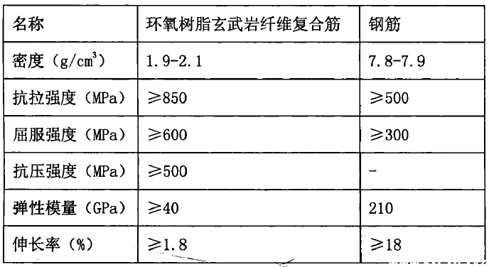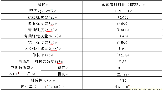 3.1 玄纖復合筋和鋼筋物理性能對比: